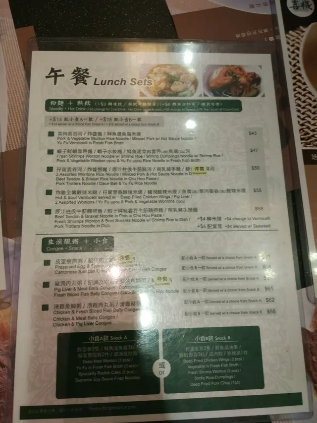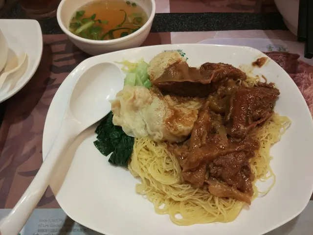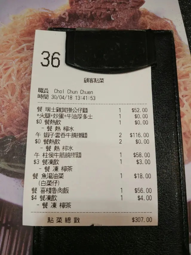 價錢稍為貴左小小 Eugene FLevel 42018-04-30378 views Follow 今日有事要入大埔,於是就喺大埔火車站附近開餐, 由於食飯時間好多人,我地又趕時間, 見到呢間舖頭唔需要等位,就入去食啦!喜棧主要食面, 粥, 都有少許飯嘅選擇!我揀咗一個蝦子料鮮雲吞牛筋腩撈麵 ,58元。 撈麵較湯麵貴 ,但見到檯面張紙上面嘅牛筋撈麵個樣幾吸引,所以都揀咗撈麵!撈麵麵條極幼,而且食落完全冇鹼水味 ,不錯 !而個湯唔會話好重味精,食完都唔覺得好口渴 !至於雲吞方面 , 真材實料 !雲吞內包住蝦,啖啖肉! 至於主角牛腩,反而唔係太出色 ,冇咩特別!牛腩有啲 硬, 而且肥膏偏多, 可以食嘅部分其實好少!另外仲叫咗個鹵肉飯, 調味適中 ,而鹵肉份量夠撈哂成碗飯!The above review is the personal opinion of a user which does not represent OpenRice's point of view.LikeShare價錢稍為貴左小小 喜棧 https://s.openrice.com/QrKT0KL4k00Report Post Ratings3Taste3Decor3Service3Hygiene1ValueDate of Visit2018-04-30Dining MethodDine InSpending Per Head$60 (Lunch)