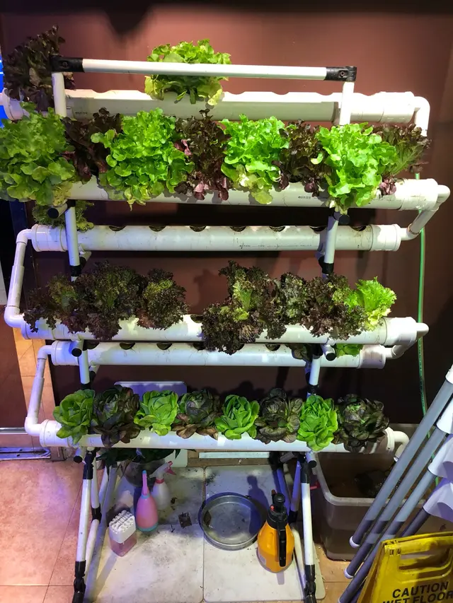 一入大門口就見到呢個蔬菜架, 有水灌溉緊架wor, 一定唔係裝飾咁簡單