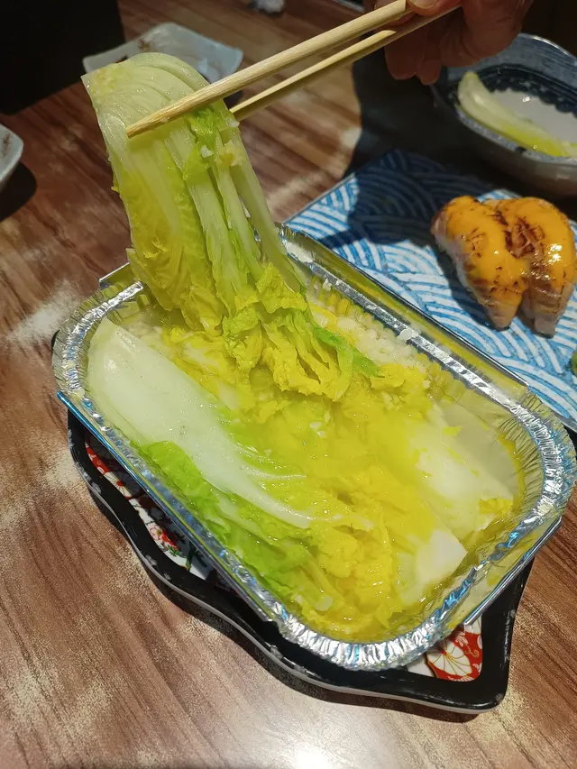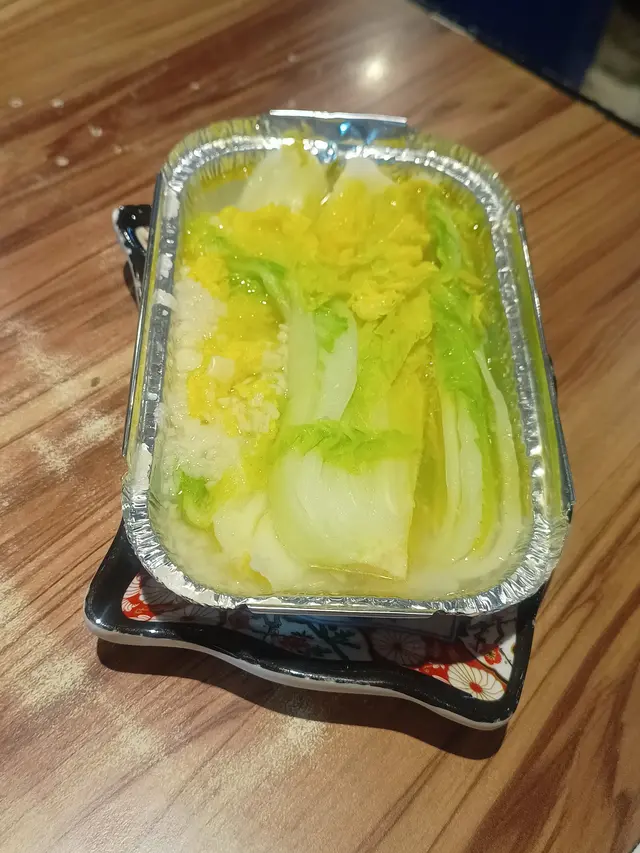 清甜的娃娃菜在錫紙盤內燜烤,吸收了牛油與蒜香的精華,入口柔嫩,香氣撲鼻