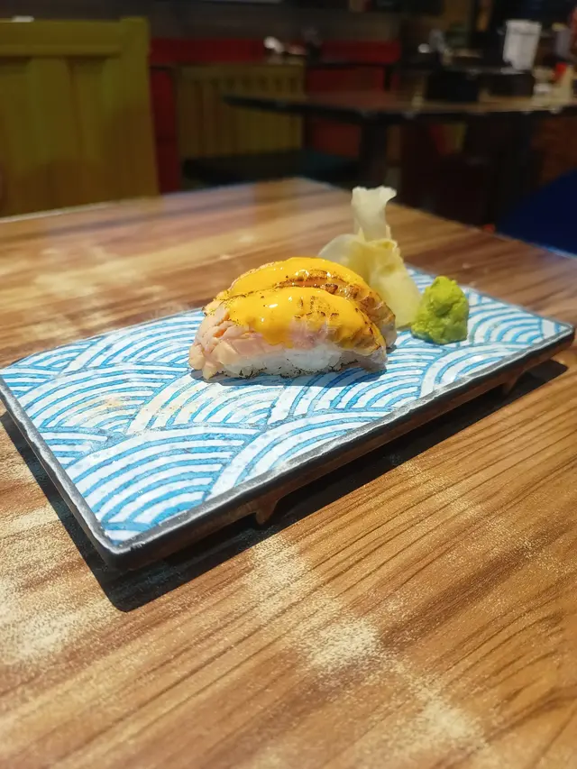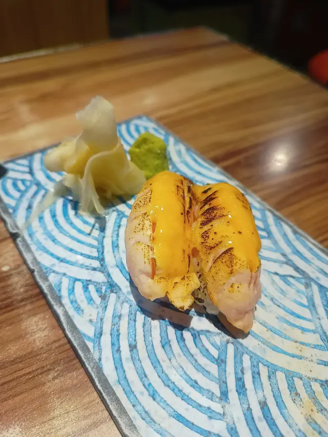 炙燒三文魚油脂豐富,輕烤後香氣四溢,配上醋飯與少許醬汁,平衡得宜,口感層次分明