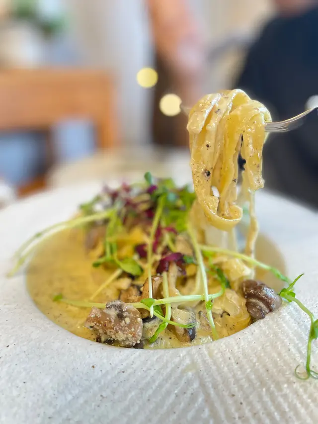 呢碟意粉充滿濃濃嘅忌廉同埋黑松露香味😍闊條麵幾有咬口,相當掛汁😗入邊仲有啲野菌🤣不過有少少膩,適合同朋友share~