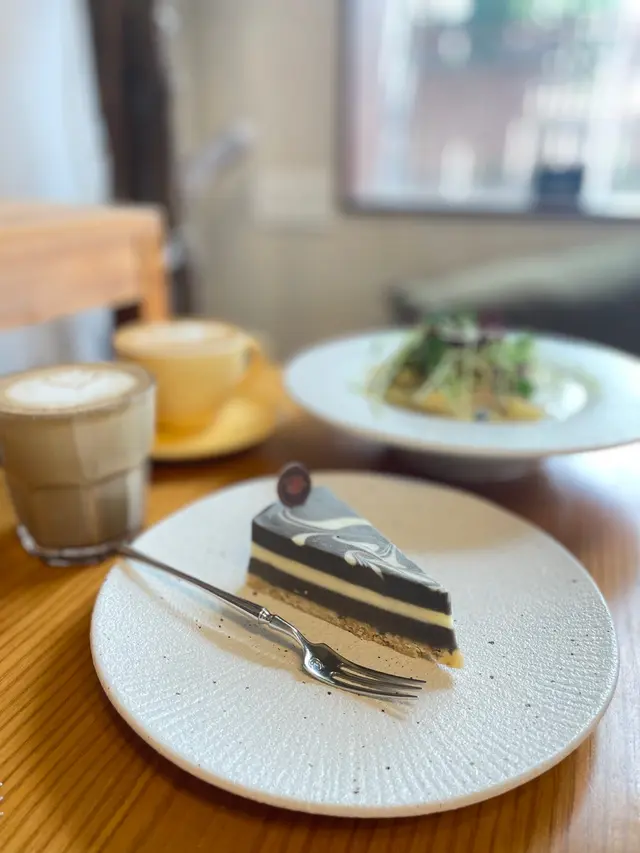 甜品點咗個比較特別嘅芝士蛋糕🖤賣相幾靚,灰白相間,有兩層黑芝麻,中間白色夾心係白朱古力味,最底仲有層餅底🍪食落口感似乳酪凍餅,比較輕盈😝帶點芝麻香~