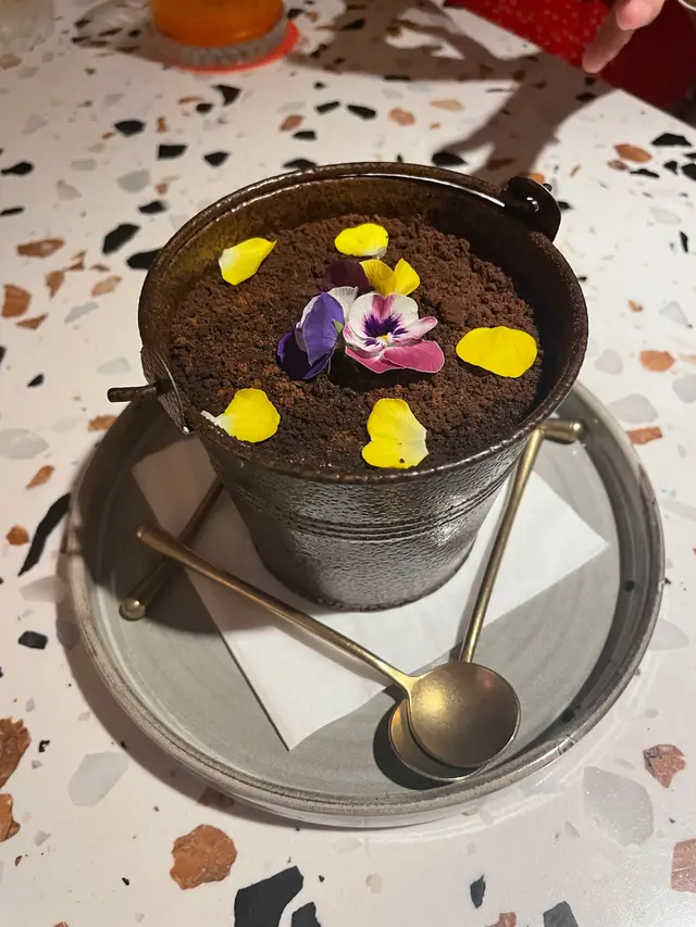 盆栽Tiramisu上層鋪滿朱古力餅乾碎配食用花,內裡就是一層一層既意大利軟芝士,口感綿密鬆軟,推薦值得一試。