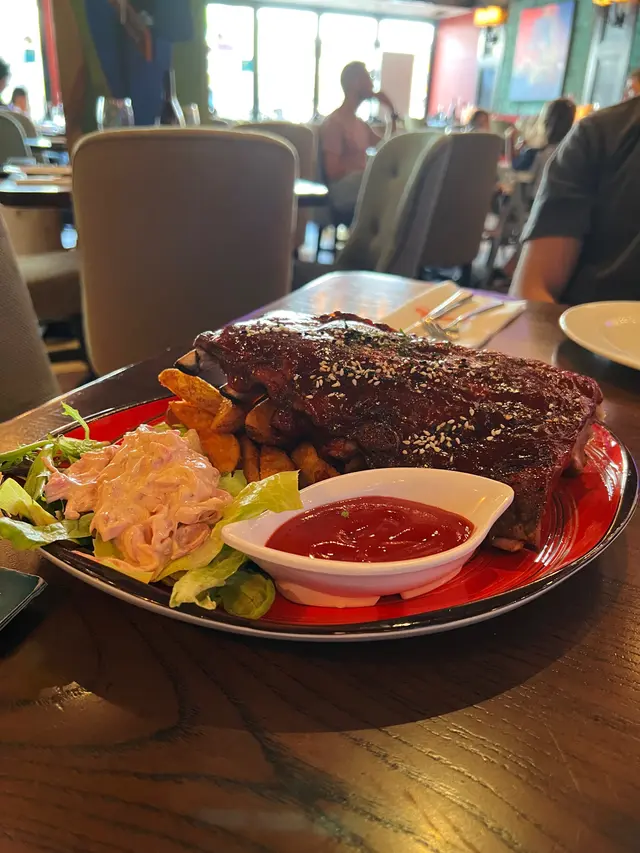 係好香好嫩既醬燒BB豬肋骨,BBQ醬食到微甜同辣,配係燒完既豬肋骨簡直一流