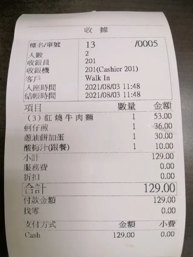 充滿濃厚台灣風味的食店 Cherry Chui 710Level 12021-08-03577 views Follow 第一次慕名前往幫襯《程班長台灣美食》,坦白說,店舖的位置不是處於顯眼的大街小巷,而店內的裝修也比較簡陋,第一個印象真的不是很吸引。不過,所提供的食品真的充滿濃厚的台灣風味,感覺很正宗。1紅燒牛肉麵$53先來一碗「紅燒牛肉麵」,麵條的口感幼滑,應該是正宗手工麵,因為肉眼所見,每一條麵的粗幼都不同,而且湯底非常美味,牛肉切成粒狀,咬下去感覺很香軟。蚵仔煎$36接著試試「蚵仔煎」。裡頭主要有生菜和蠔仔。蠔仔的數量雖然不算多,但是體積比想像中大。不過,對於吃慣潮式蠔餅的我來說,感覺沒有那麼香口。蔥油餅加蛋$30最後,點了一份「蔥油餅加蛋」。吃下去的口感很豐富美味,而且沒有想過會那麼飽肚,幸好惠顧套餐只要加$10就可以換購一杯酸梅汁,可以速速幫助消化。整體來說,對於喜歡吃台灣菜的朋友來說,真的是一個很不錯的選擇。The above review is the personal opinion of a user which does not represent OpenRice's point of view.LikeShare充滿濃厚台灣風味的食店 程班長台灣美食 https://s.openrice.com/QrKT0FRqz00Report Post Ratings4Taste3Decor4Service4Hygiene4ValueRecommended Dishes紅燒牛肉麵$53蔥油餅加蛋$30Dining MethodDine In