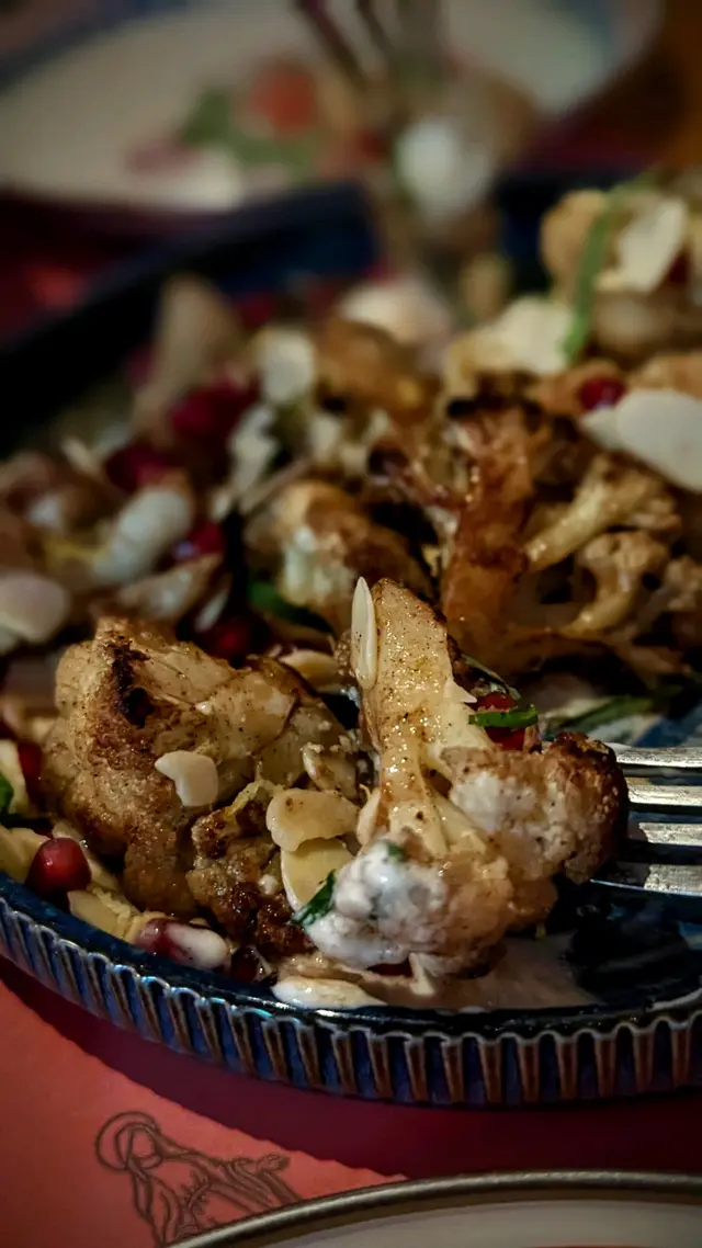 首先講下最鍾意嘅菜式Cauliflower, 加咗酸乳酪,紅石榴粒,杏仁片,孜然,充滿地中海特色,顏色豐富。加上廚師大火炒過, 超有鍋氣,酸酸甜甜味道既椰菜花十分特別。