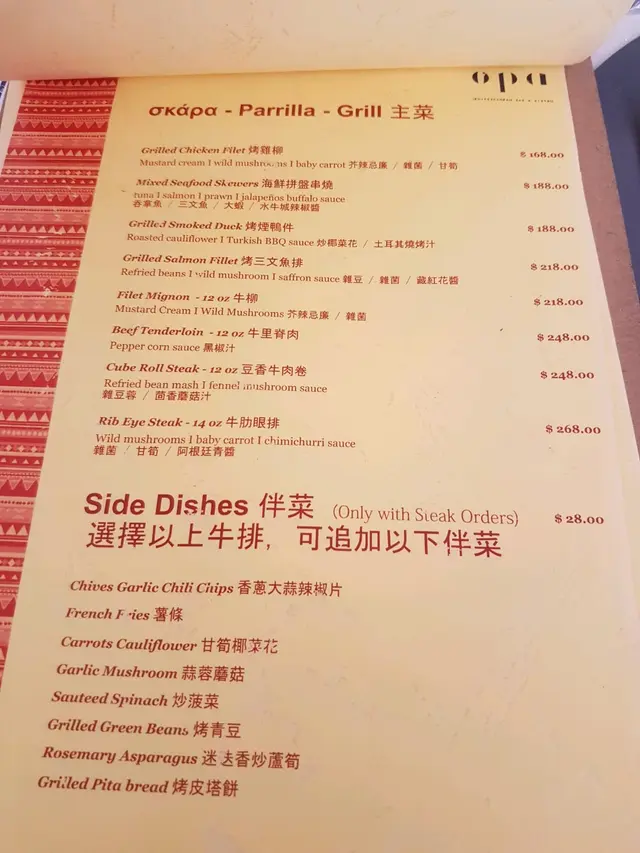 皇牌菜 ,好有噱頭,海鮮串成條上枱,材料有吞拿魚、三文魚、大蝦配水牛城辣椒醬, 還夾雜了檸檬, 紅黃綠青椒和洋蔥,中和了肉類的肥膩感。整碟串燒還配送了幾塊餅和辣醬或甜醬一起吃,好特別別有風味。