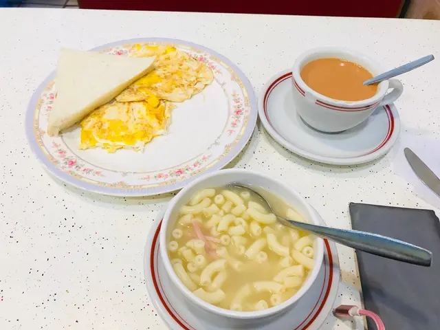 加上個火腿通粉個重點來喇!個湯就好重味精,份量少到同飯碗冇咩分別。下次都不建議再光顧,奶茶就茶精太重,唔夠滑嚴重地影響口感。