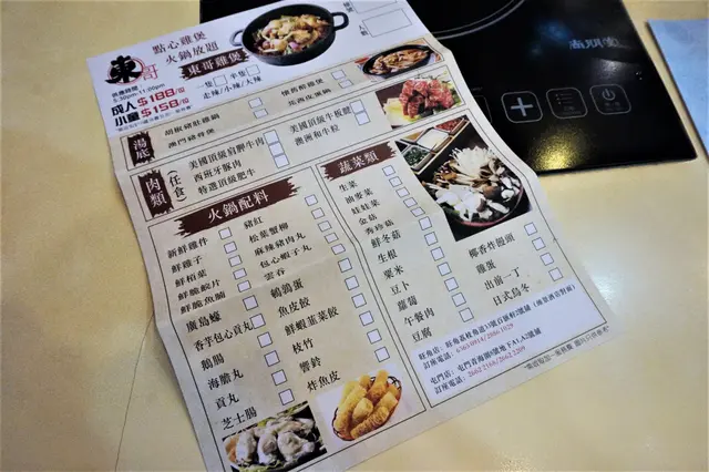 任食火鍋有啲咩揀呢?一張點菜紙睇晒,5款湯底供選擇,而火鍋配料就唔多講,各種肉類、丸類、海鮮、蔬菜……等等,40多款,夠晒啦。份量會以填嘅人頭數去出菜,不過,都喺有多無少,成晚亦無咩漏單