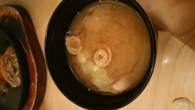 店員進來,也是先進來跪著,才為我們倆口子遞上茶水和菜單,感覺很窩心。先細心察看菜單和午市套餐的餐牌,套餐來得比較實惠,包含了沙律,味噌湯和一杯熱飲。在此時,稍作openrice搜尋一下,發現了這兒的招牌菜是海膽汁燒蠔和刺身拼盤,而且還獲得不賴的評價,恰巧午市套餐又包含了這兩個選擇,我倆就分別點了海膽汁燒蠔和刺身拼盤套餐。