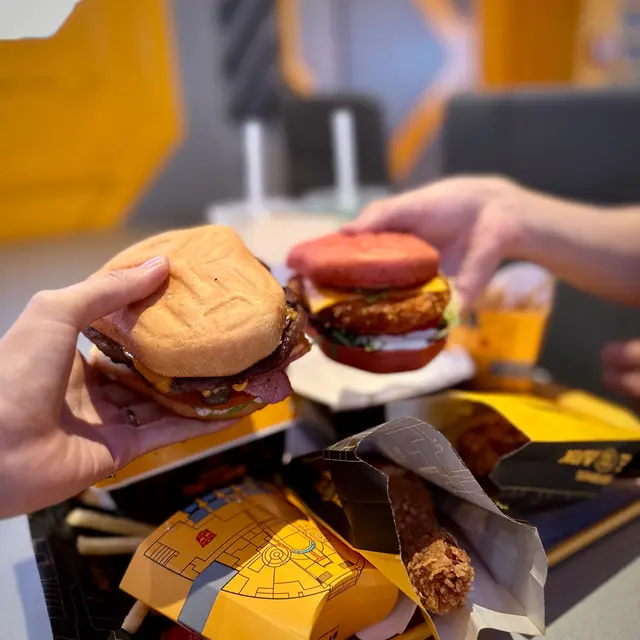 ▶︎ 漢堡麵包是吸精的紅色和高達的圖案 打卡一流😎