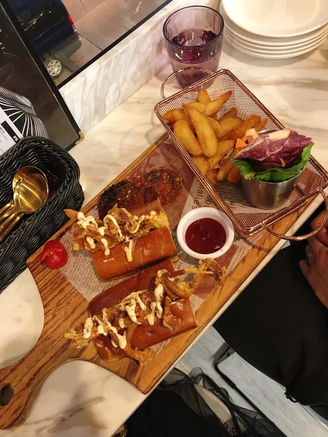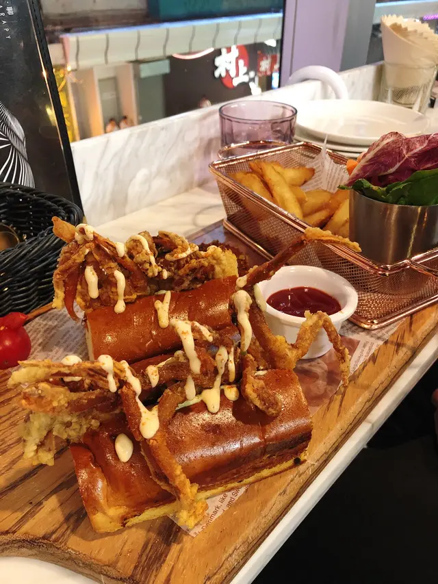 而朋友就揀左軟殼蟹牛油果包,大大隻熱辣辣軟殼蟹,炸得非常香脆,包入面有牛油果醬,口感好豐富,個包食落係暖既,真係做得好好