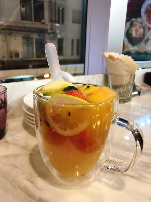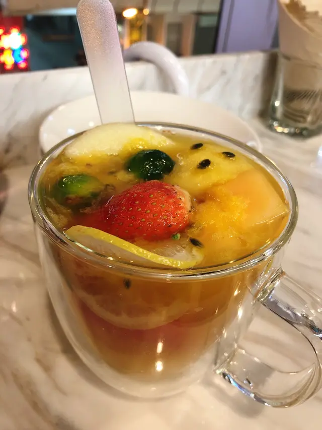 食飽飲返杯水果茶REFRESH下口腔, 裡面的水果都很新鮮, 喝完後還可以吃, 不像很多飲料店有很不天然的感覺, 唔太甜, 飮落去幾清新, 之後茶味會慢慢滲出黎,幾正