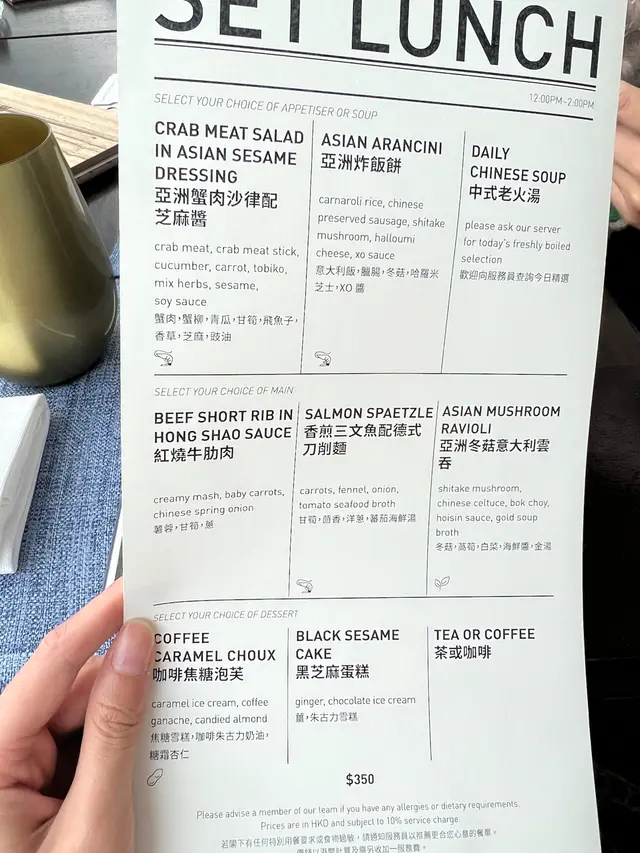 全落地玻璃海景K11 ARTUS打卡餐廳 RT_0000Level 32022-08-175K views Follow 環境|落地玻璃無遮擋既維港景係幾正! 不過夏天直對陽光比較熱 可能黎食tea會冇咁辛苦食物|通常依類景色既餐廳係食西餐多, 不過依道反而係食東南亞菜式 都幾特別!味道唔錯 不過就唔係走超精緻路線 不過加埋個景打卡已經好靚~🦁 前菜亞洲蟹肉沙律配芝麻醬|亞洲炸飯餅飯餅比較特別 炸得好脆1🦁 紅燒牛肋肉肉好淋 肉味香濃~ 個汁都好夾 上面仲有啲脆脆增加口感🦁 咖啡焦糖泡芙|黑芝麻蛋糕甜品幾出色 2款都好食!個蛋糕仲係流心既~🦁 The Commune 尖沙咀梳士巴利道18號K11 ARTUS 10樓221The above review is the personal opinion of a user which does not represent OpenRice's point of view.1Share全落地玻璃海景K11 ARTUS打卡餐廳 The Commune https://s.openrice.com/QrKT0z5cY00Report Post Ratings4Taste5Decor4Service4Hygiene4ValueDining MethodDine In