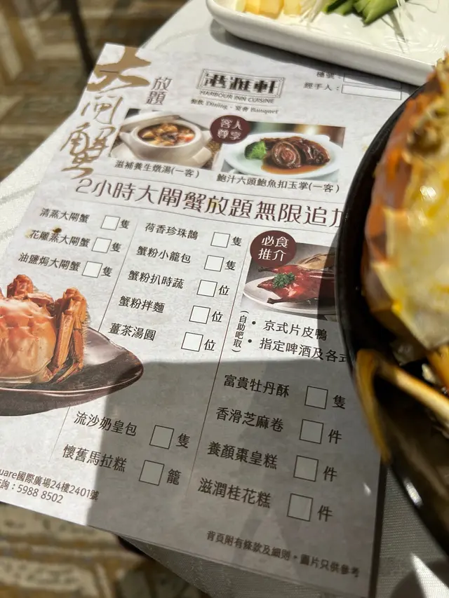 上大閘蟹速度勁慢。我地總共叫左三輪,每一輪都要等半個鐘以上。佢地話賣單半個鐘前last order,我地20:45已經提早落單,但等到21:30啲人就開始趕收場、執枱,完全唔理啲客。我地催單催左四五次,中途仲有服務員扮睇唔到,結果等左個幾鐘,等到10點先上最後一輪。
