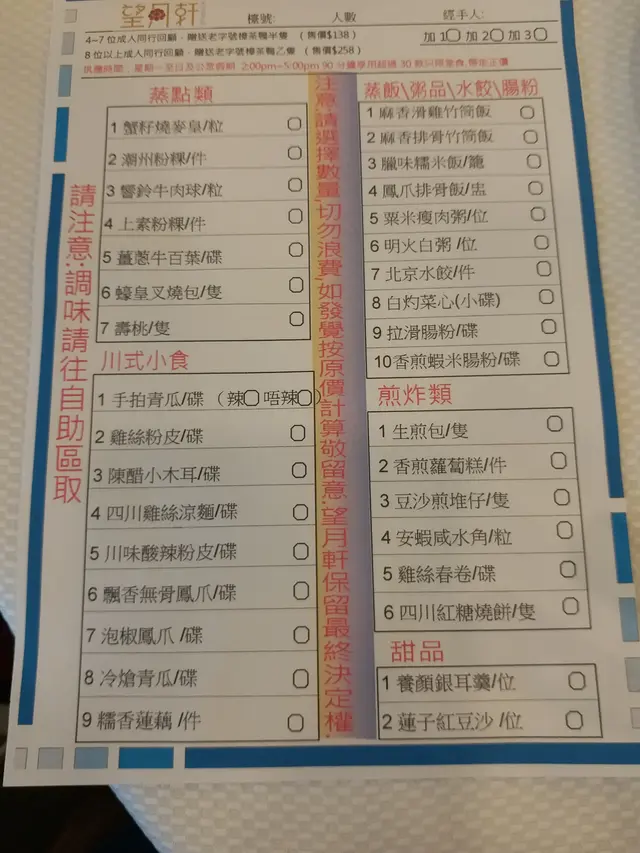 任食放題係由2點-5點,但北京水餃一早已經冇,腸粉同所有飯類更加o係上面提過, 3:40pm落單已經冇晒.我o地問咁快冇晒?供應到5點個喎.個亞姐即刻用鬧人o既語氣答,咁係整咁多就咁多云云…..IN又忍唔住講句,得喇,我會同你經理講.佢入o左去廚房出返o黎話仍有臘味糯米飯.