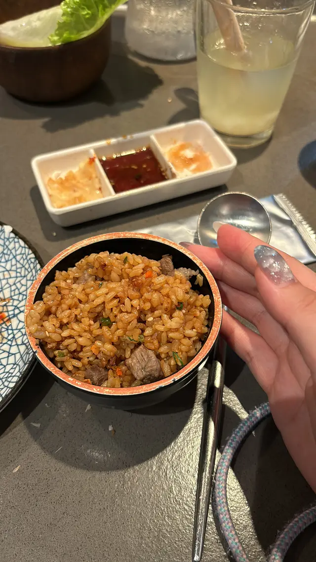 基本上所有嘅肉類都冇醃製過,味道係靠你自己點醬料。喺冇醃製過嘅肉類應該會食到肉味可惜係乜嘢味都冇。 個牛肉炒飯嘅味道真係一言難盡,我哋食咗一啖就冇再食。