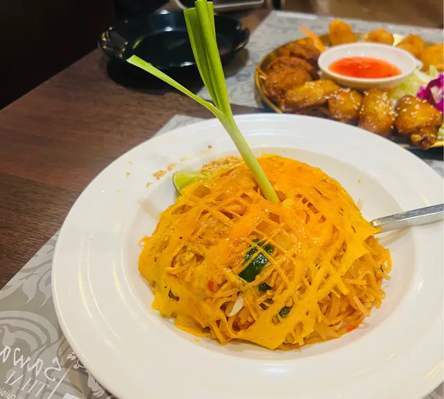 再來我試咗干炒泰式蛋包金邊粉,哇,有驚喜!蛋包香滑,裡面嘅金邊粉炒得夠入味,加埋啲青菜,口感豐富,好食!每一口都令人驚喜,味道好有層次,尤其是加咗啲檸檬汁之後,清新又唔膩。