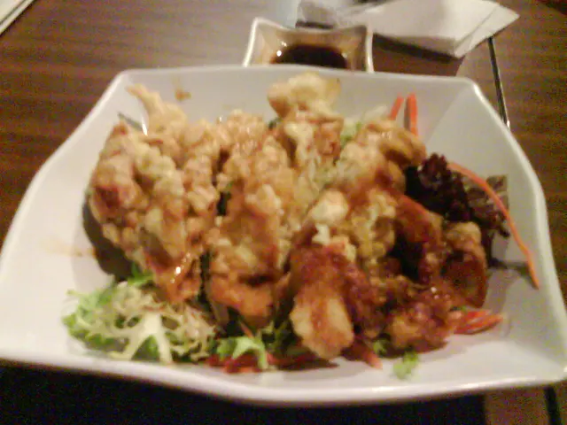 除了壽司和手卷外, 我們還點了炸蝦天婦羅三只, 軟殼蟹沙律 和地獄拉麵, 天婦羅炸蝦可能因為有用生粉腌過, 所以蝦身很爽口, 惜咸味不足, 建議用海鹽多腌一點時間