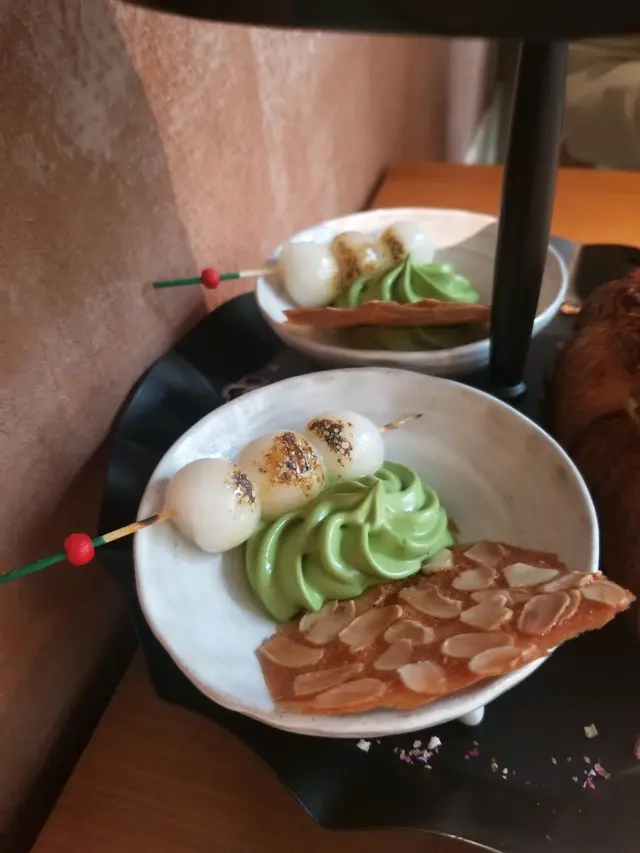 居然有日式丸子配抹茶cream🙀杏仁脆片薄薄之餘又甜甜地,配上充滿抹茶味嘅cream,又幾夾喎~而且丸子非常煙韌,好好食👍🏻