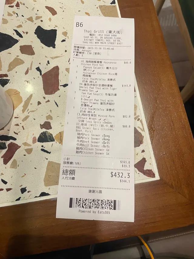 今次前排放假同老公同奶奶去行街市,順便搵咗間泰式餐廳食嘢,餐廳位於東威大廈地下 11 號地舖,環境乾淨明亮又有泰國街頭feel,啱晒一家大細輕鬆食飯!總計 $393。