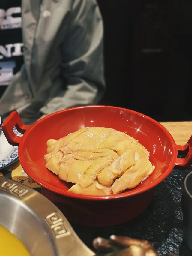 •足料湯底!一碗滿滿的花膠在火鍋入面,然後店員會倒入已經烹調過的花膠雞湯,半隻半熟雞會另外上。店員會建議先煮熱湯底品嚐濃厚花膠雞湯底,然後再放半熟雞烹煮大概三至五分鐘即可食用,雞肉肉質鮮嫩,雞味夠濃郁🤤