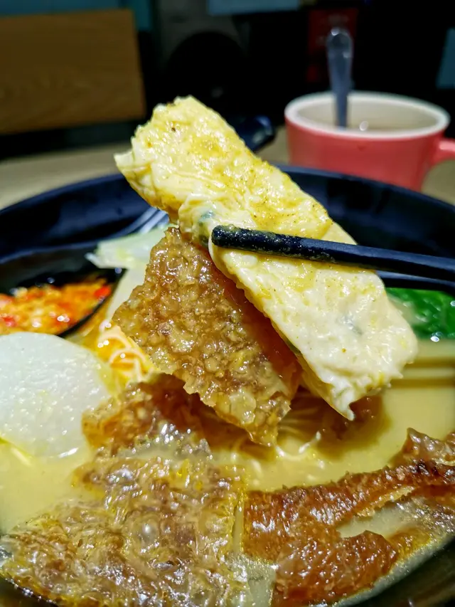 啲配料樣樣都唔錯,而特別一提係豬紅同蘿蔔炆得好淋好入味,蘿蔔再索到啲咖喱汁更加惹味