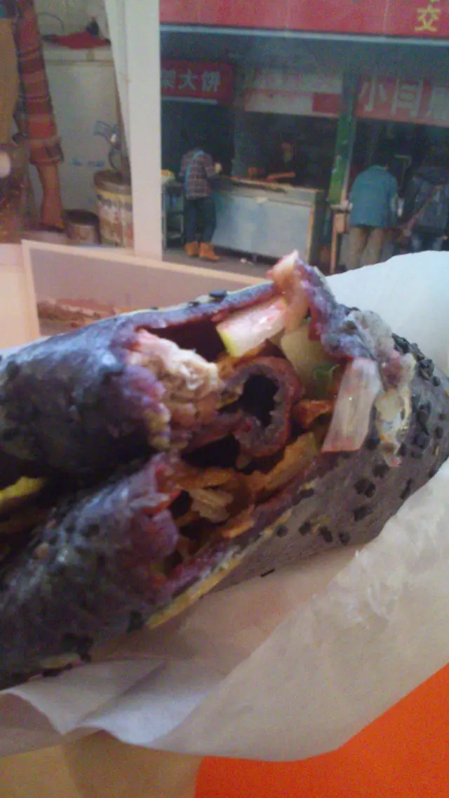 熱騰騰的煎餅到手了, 原本諗住邊行邊食, 但頗有份量, 故最後決定堂食,