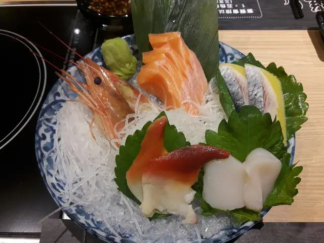 刺身拼盤有五款:赤蝦,三文魚,北寄貝,帶子,希靈魚,非常鮮甜,夠哂新鮮