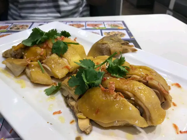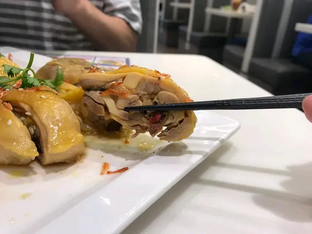 啱啱出完旺角 同朋友準備搭小巴返荃灣 次次經過荷里活冰室 但係都冇機會試 今日心血來潮就上左2樓坐低 。 我就好中意食雞 於是叫左個招牌咸香雞半隻 朋友就叫左西蘭花鮮蝦龍躉球 叫完餸 伙記比左兩碗例湯 滋潤得來冇味精 唔錯 咸香雞一上 個賣相同香味已經知有料到 食落冇雪味 好香黃油味 正