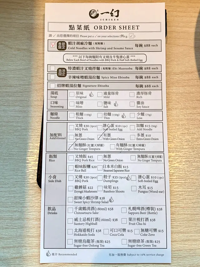 是次選擇季節限定的蝦汁胡麻冷麵(撈麵),配的是粗拉麵,可跟或不跟蔥或紅薑。