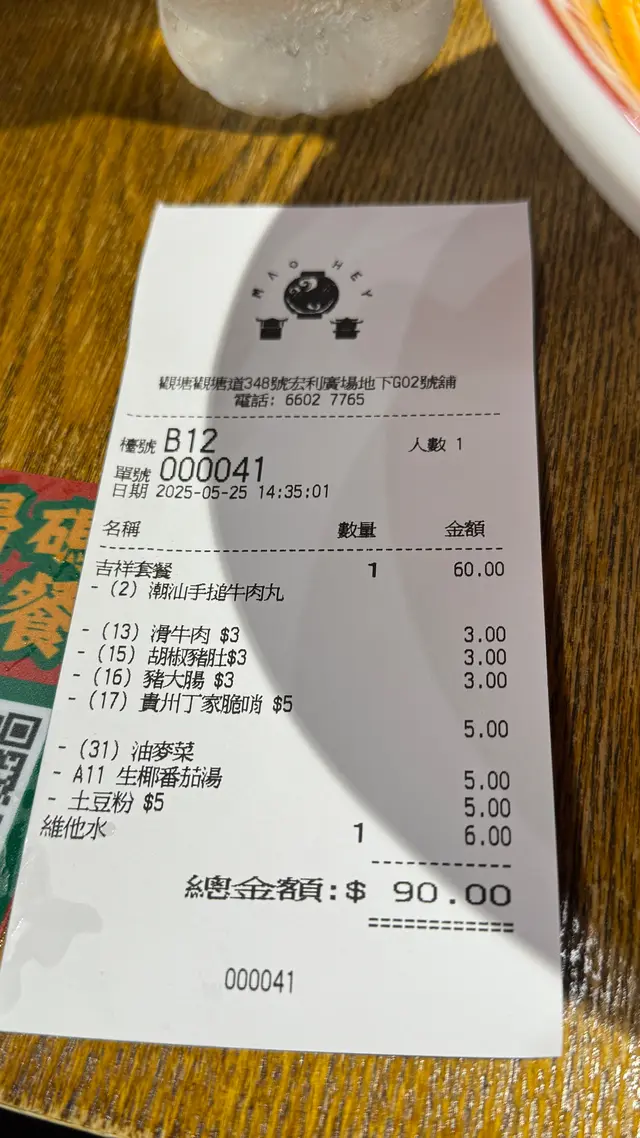 食材有潮汕手搥牛肉丸、滑牛肉、胡椒豬肚 、油麥菜、豬大腸和貴州丁家脆哨