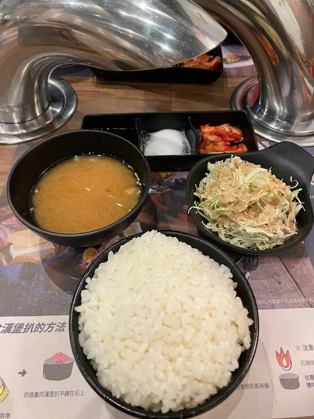因為是第一次嚟,梗係試啲最普通嘅先,咁就同朋友嗌咗個兩人套餐(Ver.1)分別有芝士蛋和牛漢堡扒(M)、雞蛋和牛漢堡扒(M)、忌廉艺士沙律和兩杯野飲;咁除此之外,仲有白飯,湯同一份細細碗嘅胡麻沙律