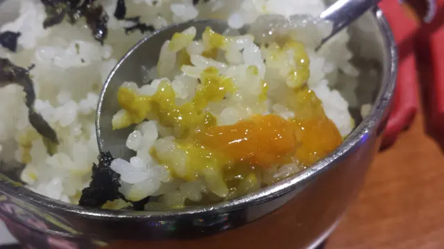 壓軸出場的是我最期待的,生醃醬油蟹, 跟餐有飯及湯, 因為烤肉套餐已有兩個飯就叫店員少給一個飯以免浪費吧! 醬油蟹比想像中細, 但蟹膏都OK多而很鮮味, 不過不喜歡的人可能會覺得腥, 之前食過蟹刺身都會知道蟹刺身的肉質會比較稔, 經醬油醃後味道仍然鮮, 很不錯, 又不會說過咸。
