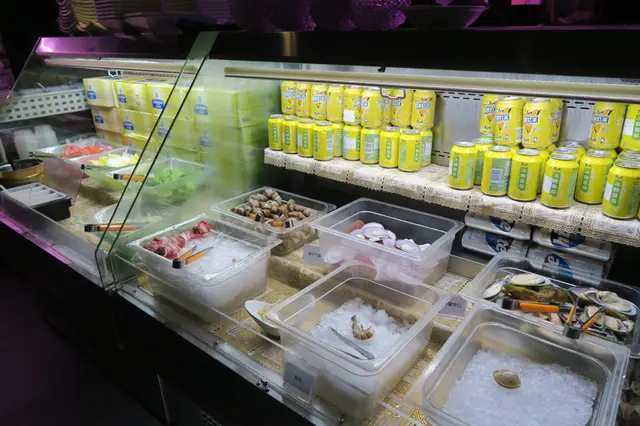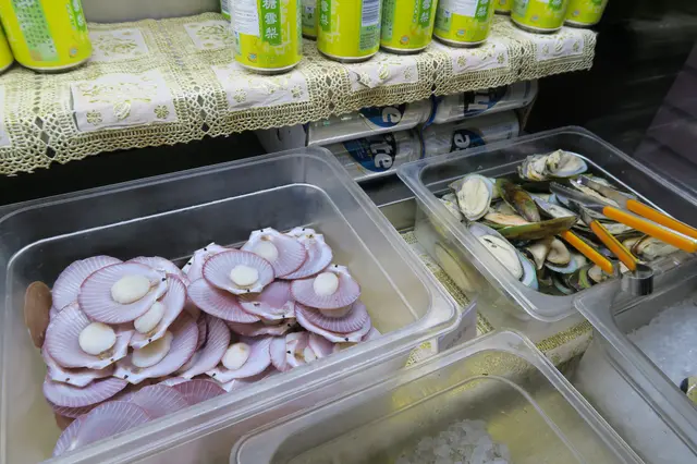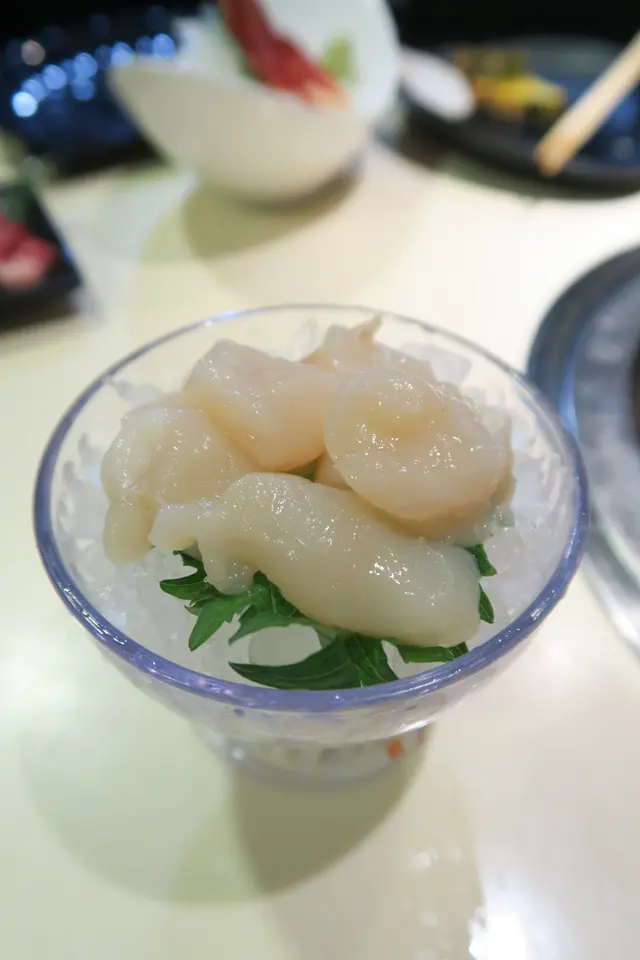 吃正這裏我開始有點飽,但身邊的朋友們還未吃飽,所以我出去看一下有什麼其他食物。外面同樣有雪糕、飲品、沙律等,還有一些海鮮火鍋配料,包括了帶子、青口螺等。