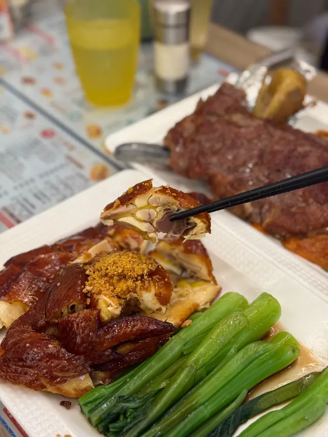 茶餐廳都有吊燒雞食,仲要係皮脆內嫩,蒜香滿滿!一定要點埋佢個泰式辣醬會更加惹味。想讚一讚呢間小店連碗白飯都特別巨大!!