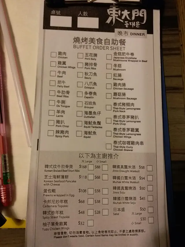 勁少野選擇的放題 lornachuiLevel 12016-08-14762 views Follow 其實旺角間間韓燒放題都差唔多價錢,以前食過覺得ok,今晚帶朋友再食... 點知中伏左....成個menu得勁少選擇,有個海鮮盤送,不過完全冇味既海鮮....而且冇得再叫海鮮,俾錢都冇個職員話.... 完全冇意欲再黎既店.... 2The above review is the personal opinion of a user which does not represent OpenRice's point of view.2Share勁少野選擇的放題 東大門韓國料理 https://s.openrice.com/QrKT04oae00Report Post Ratings--Taste--Decor--Service--Hygiene--ValueDining MethodDine In