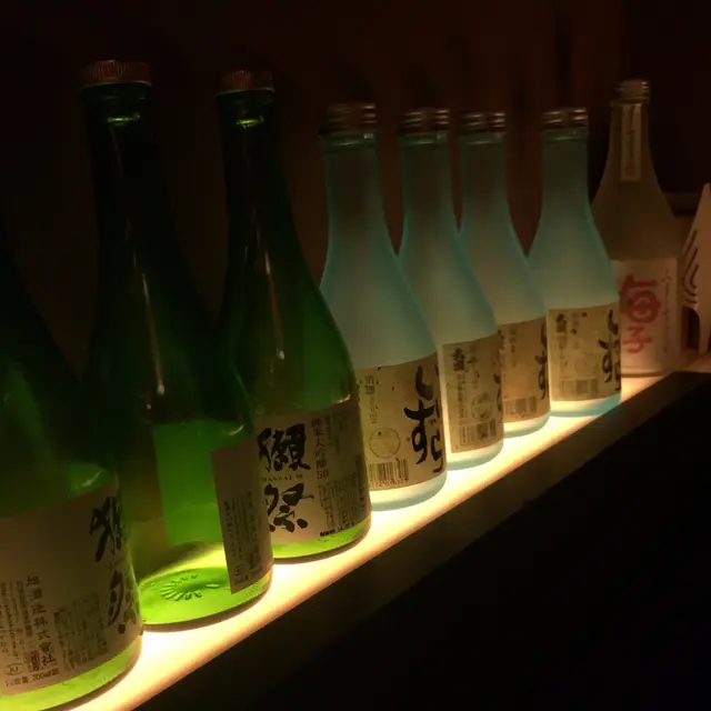 牆上放著一排酒,頗有特式
