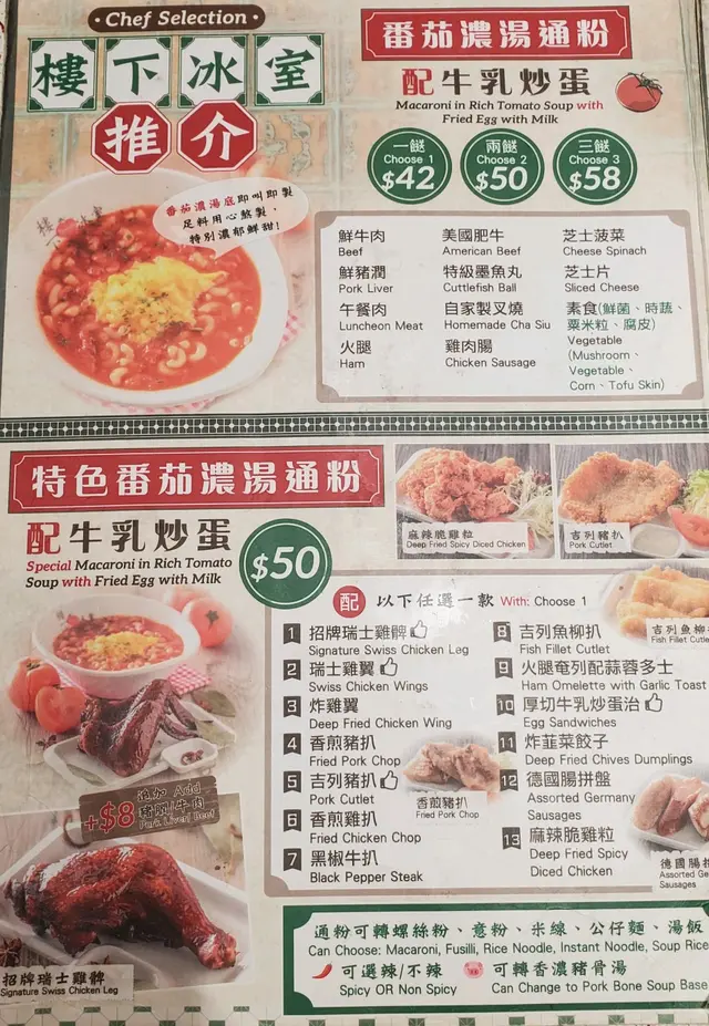 勁正招牌 濃湯蕃茄通粉 勇者bujiLevel 32021-04-18100 views Follow 呢一間 [樓下冰室],同傳統嘅茶記好有分別,除咗裝修有些少懷舊特色,食物種類仲好多元化,每款都好有特色,例如最出名嘅瑞士汁雞髀、茄湯類通粉等等……今次專登個同事嚟試試!牛肉豬潤蕃茄濃湯通粉,真材實料,一入口蕃茄嘅濃湯就好突出,豬潤爽口又新鮮!潮州蠔仔肉碎泡飯,嗰啲蠔仔真係幾大粒,而且一上枱,嚇咗一跳好大碗 蠔仔鋪滿泡飯!$50 真係好抵食,而且仲有好多冬菇絲、芫茜,陣陣香味!炸韭菜餃,大大粒,有八件,配上沙律醬 韭菜味好突出,裏面好多韭菜,唔算多油 食落十分香口 !綠椰冰,甜味適中,綠豆蓉同椰汁味道好清新 。菠蘿冰,就係我嘅至愛,大大粒菠蘿,好懷舊。1The above review is the personal opinion of a user which does not represent OpenRice's point of view.LikeShare勁正招牌 濃湯蕃茄通粉 樓下冰室 https://s.openrice.com/QrKT0REWy00Report Post Ratings5Taste5Decor4Service4Hygiene5ValueDining MethodDine In