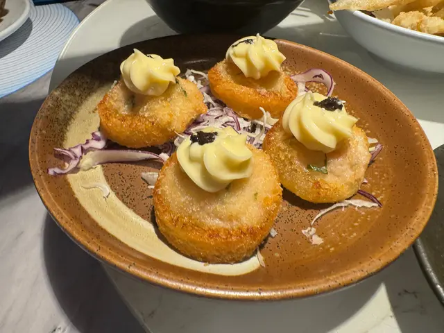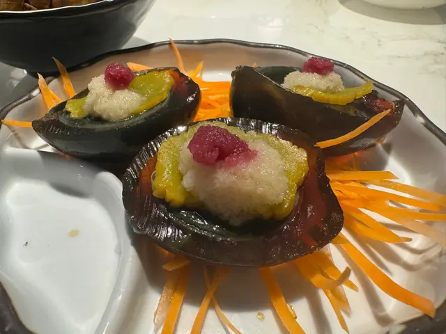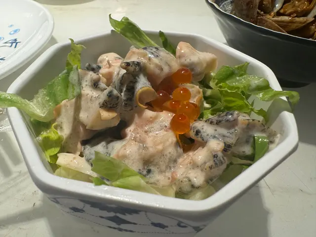 明太子螺肉,上面有啲芥辣沙律醬配起嚟味道都幾好,好開胃。