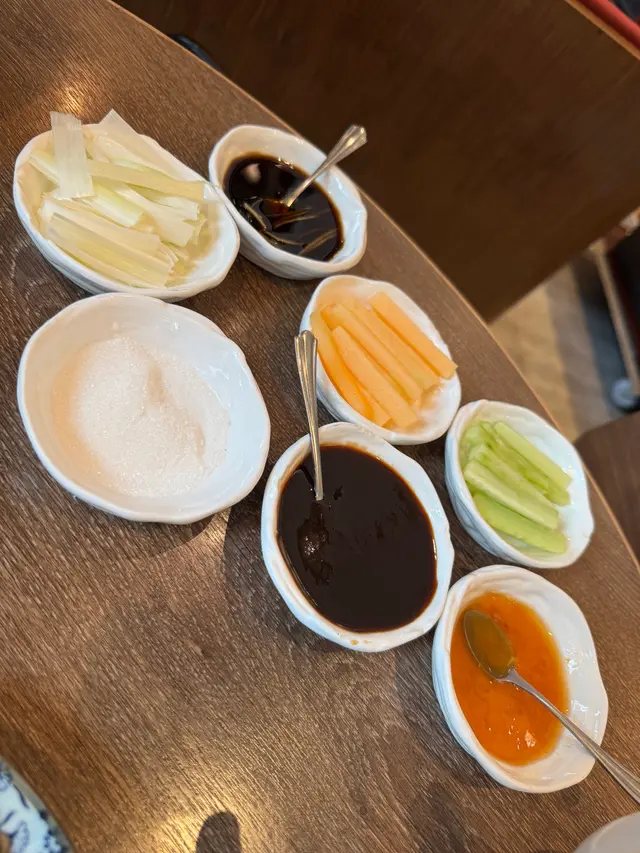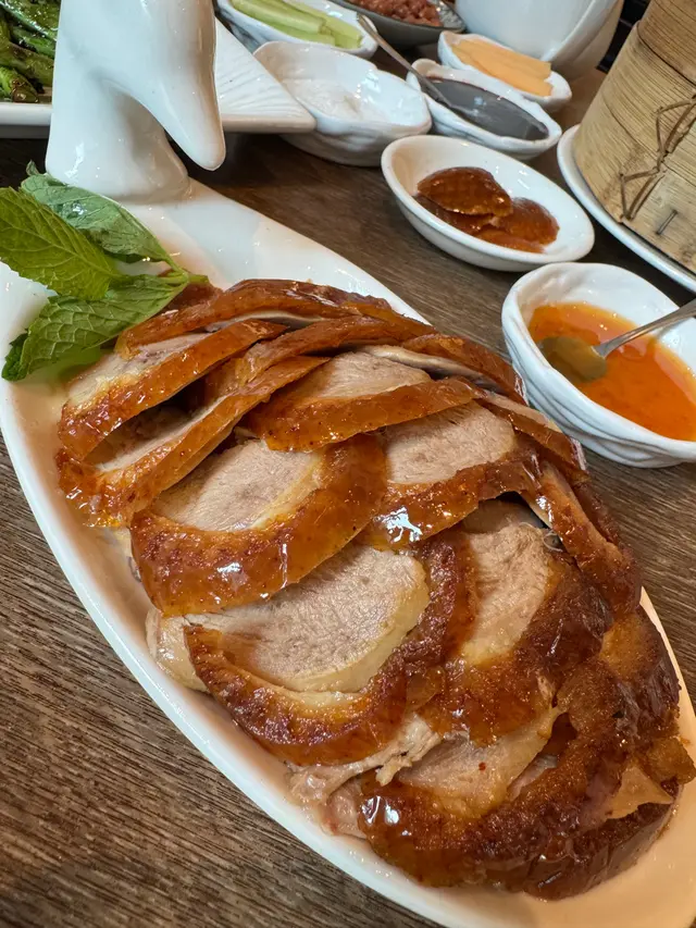 古琴雅苑以正宗京菜聞名,招牌「北京烤鴨」更是必試之選!烤鴨選用肥瘦適中的北京鴨,以傳統掛爐技法烤製,外皮酥脆如琥珀,肉質嫩滑多汁。師傅會即席片皮,搭配薄如蟬翼的甜麵醬, 青瓜及京蔥,入口油香豐腴卻不膩。