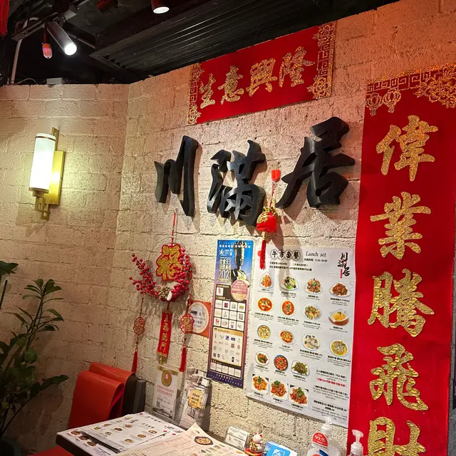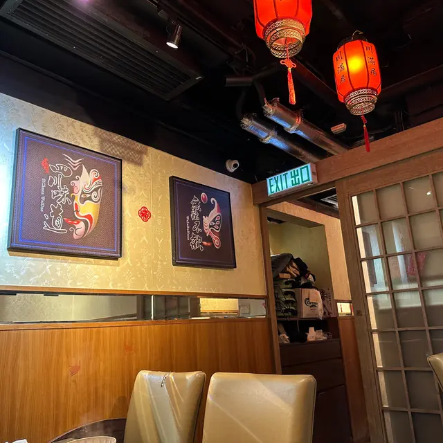 上網睇到呢間川菜館有片皮鴨,心諗可以滿足我兩個願望🤩結果去到,冇片皮鴨食😢裝修好有中國風,頭頂掛住紅紅嘅大燈籠,牆身鋪滿面譜👺