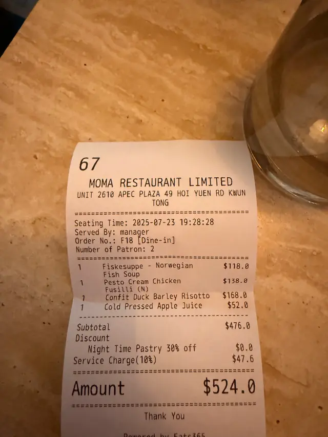 走進中環Moma,餐廳的裝潢帶著北歐極簡主義的美感——原木色調的桌椅、開放式廚房、大片落地窗引入自然光,整體氛圍乾淨而舒適。