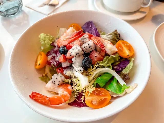 鮮果大蝦沙律嘅大蝦都夠彈牙,值得一讚嘅係大蝦全部都挑曬蝦腸,乾淨企理,即使係西餐廳都唔係間間做到。