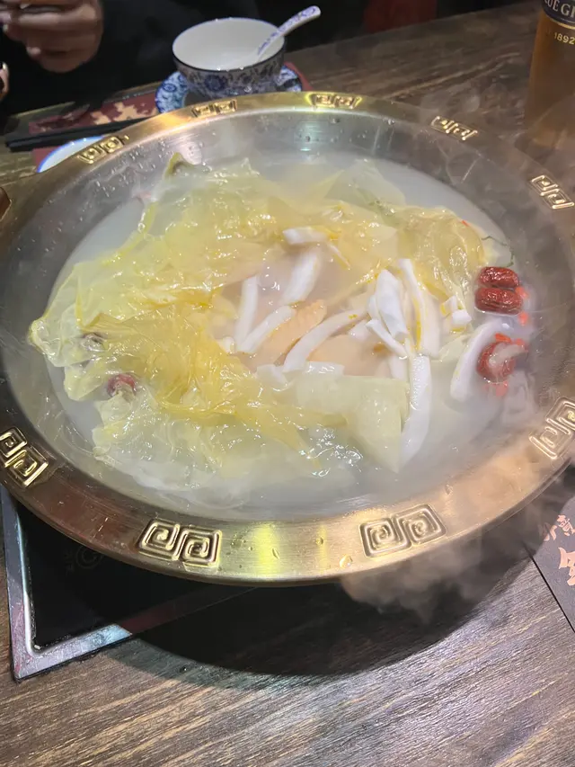 一上枱勁吸精呀!用腐皮包裹著椰子肉及嫩滑雞,而且聞到濃郁椰子味道,等待湯底滾了,先品嚐湯底,在吃鮮嫩的雞件。