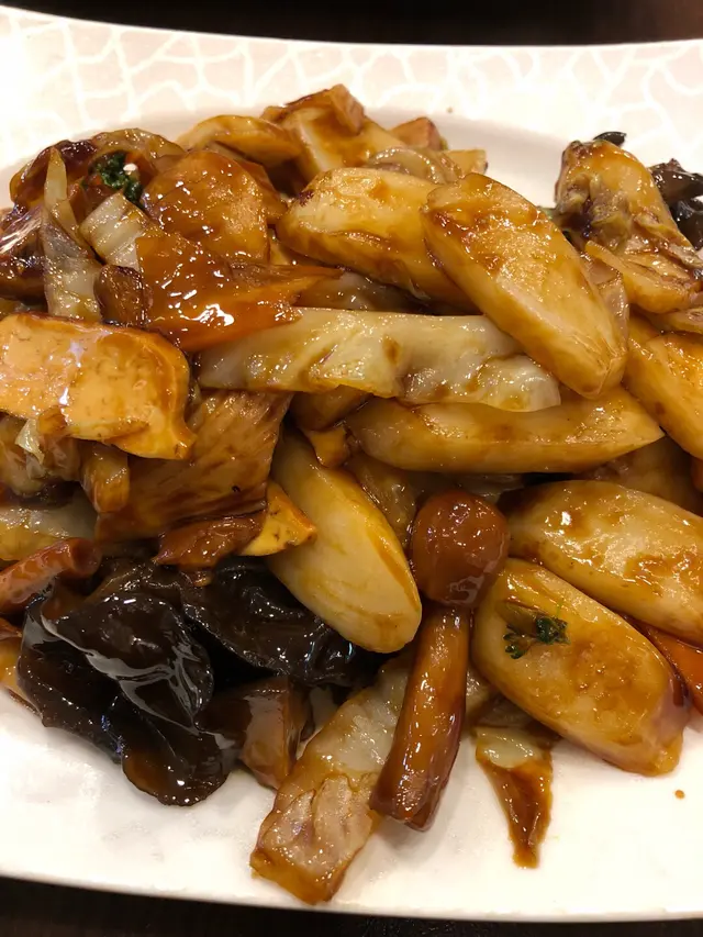 羅漢齋炒年糕,配料有雲耳、菇、豆腐乾、黃牙白,咸度適中,年糕又唔會太韌