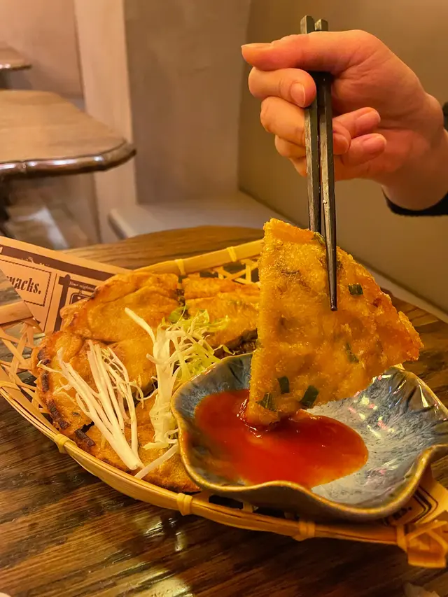 上桌會見到呢度嘅蚵仔煎同平時見到嘅樣貌不同,比較像是海鮮薄罉嘅形態,邊位炸得十分香脆可口,蠔仔鮮甜,加埋紅色秘製醬汁食一流😆🤩