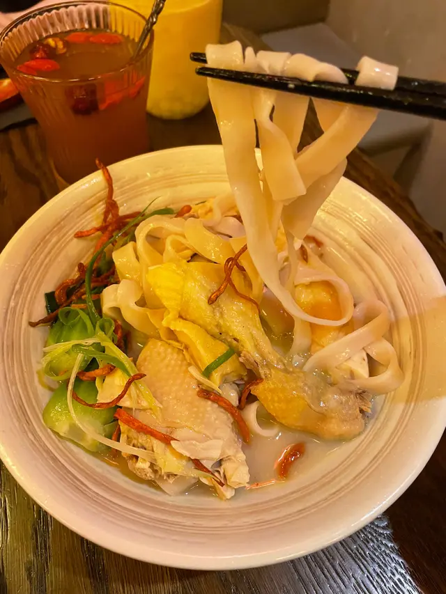 濃濃清甜雞湯,雞湯仲係上枱時店員即時由保溫壺倒落麵上,十分熱辣辣。湯一飲就知用咗非常足料去煲呢個湯底,既好味又健康
