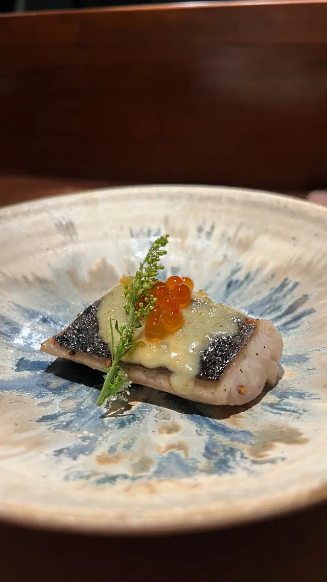 燒鏗魚用上稻草燒製,黑醋汁很開胃,魚肉軟淋,很不錯。