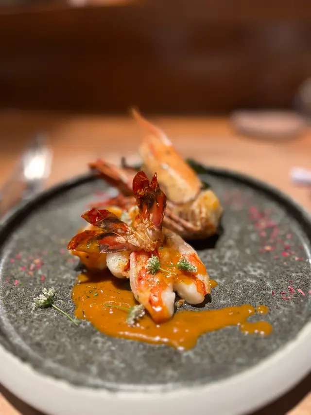 虎蝦幔肉很彈牙,這裡很特別用香濃龍蝦汁來伴虎蝦,使整個菜品蝦味更加突出。